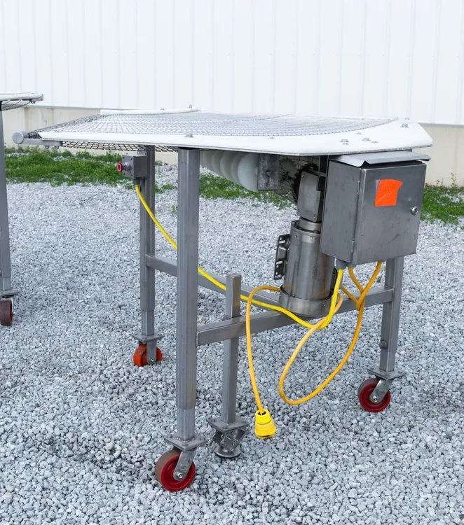 For sale: 90-degree flat top turn conveyor in used condition. Ideal for streamlined operations, with a 40-inch usable width. Single-speed design optimizes functionality. Manufacturer and model details unspecified.